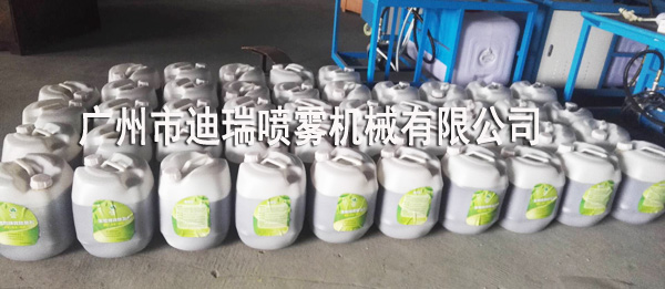 植物除臭劑經過自動配比器按一定比例稀釋后,經噴霧控制設備和高壓管路系統輸送至布設在臭氣控制區域現場的噴嘴,并被霧化成10~40微米粒徑的細霧均勻分散至控制區域現場空間,植物除臭劑的細霧和空氣中的臭氣分子接觸后,通過吸收、親核加成、催化氧化、化合等一系列反應,達到除臭氣的目的。