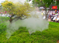 從6月開(kāi)始高溫天氣就纏上廣東。據(jù)統(tǒng)計(jì),6月全省平均氣溫28.1℃,較常年同期偏高0.8℃;平均高溫日數(shù)(日最高氣溫≥35 ℃)為3.6天,較常年平均偏多1.9天,為1951年以來(lái)歷史同期第4位多。這么炎熱的天氣,放暑假的孩子們?nèi)ツ耐姹容^開(kāi)心呢?當(dāng)然是深受孩子們喜歡的廣州動(dòng)物園了,里面由獅子、老虎、熊、猴子、山羊、小狗、馬等動(dòng)物在馴獸員的指揮下進(jìn)行各種精采的雜技表演,令孩子們體會(huì)動(dòng)物的“聰明能干”,增添不少生活樂(lè)趣。自從孩子們陸續(xù)放暑假,廣州動(dòng)物園接待的小游客越來(lái)越多,高溫這個(gè)問(wèn)題讓工作人員很是困惑,經(jīng)過(guò)我司技術(shù)部幾次現(xiàn)場(chǎng)考察,最后選定我司的噴霧風(fēng)扇和戶(hù)外噴霧降溫系統(tǒng)一起使用,降溫效果很不錯(cuò),受到游客和相關(guān)領(lǐng)導(dǎo)的肯定。